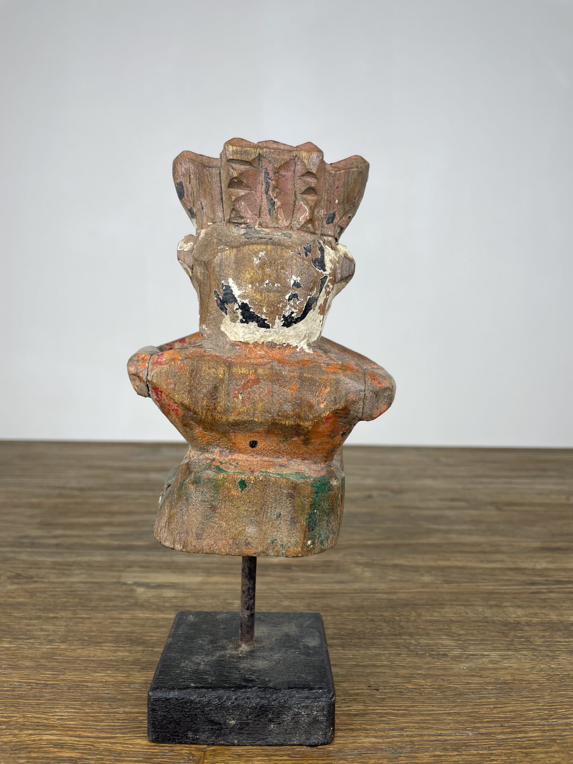 Afmetingen houten voetstuk: ca. 7 cm x 7 cm, hoogte: 22 cm
